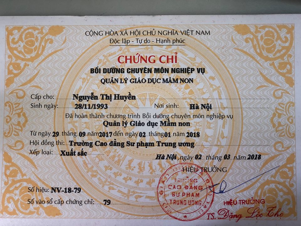 CHỨNG CHỈ QUẢN LÝ GIÁO DỤC MẦM NON Chứng chỉ