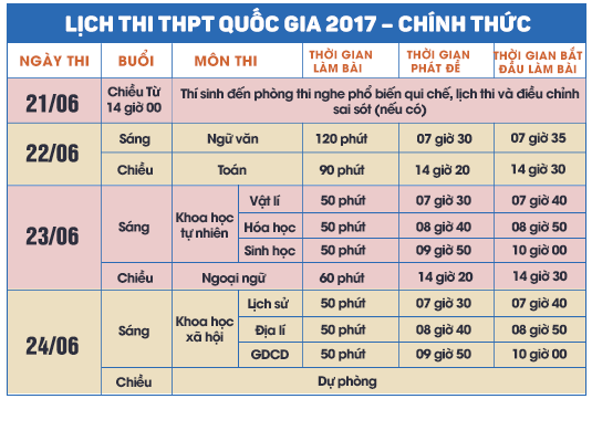 Thời gian thi tuyển sinh Cao đẳng Đại học năm 2017